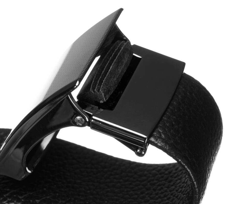 - Stylowa klamra | Zakończony czarną klamrą z subtelnym zdobieniem. Ten rodzaj klamry umożliwia bardzo sprawne zapięcie i rozpięcie paska.