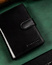 Klasyczny fason z modnym wykończeniem| Portfel w czarnym kolorze. Front zdobi logo marki. Model z zapięciem zewnętrznym;
