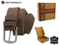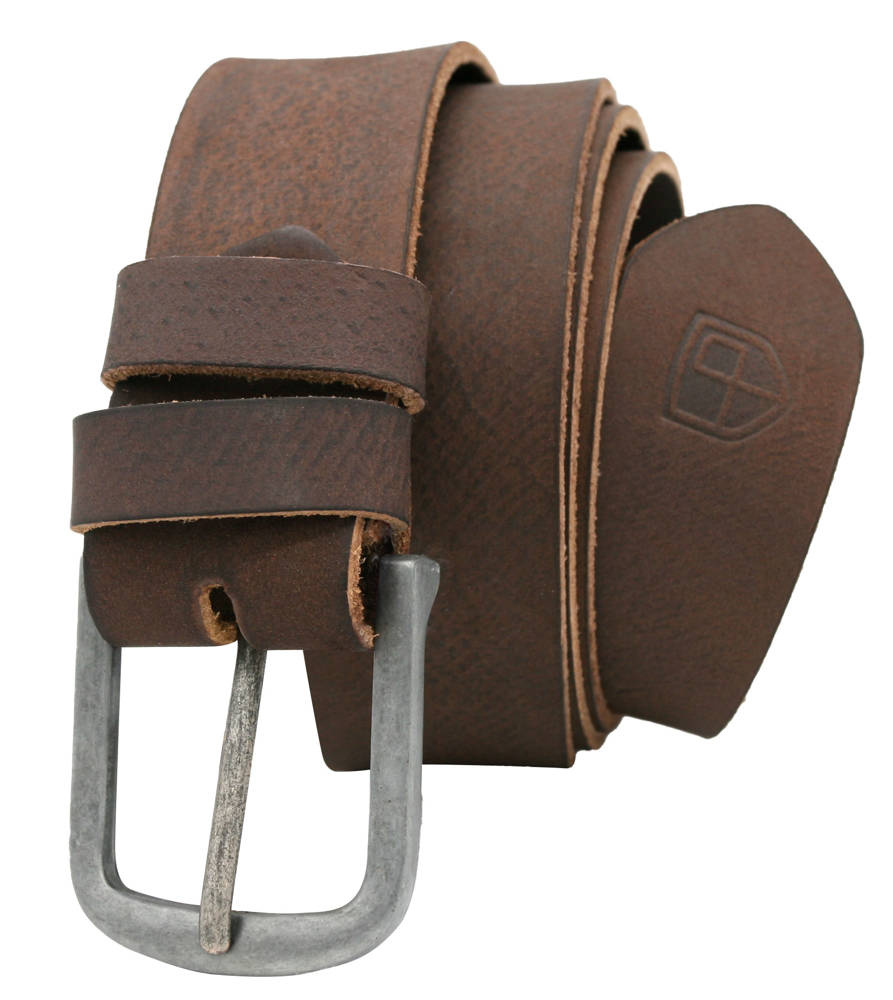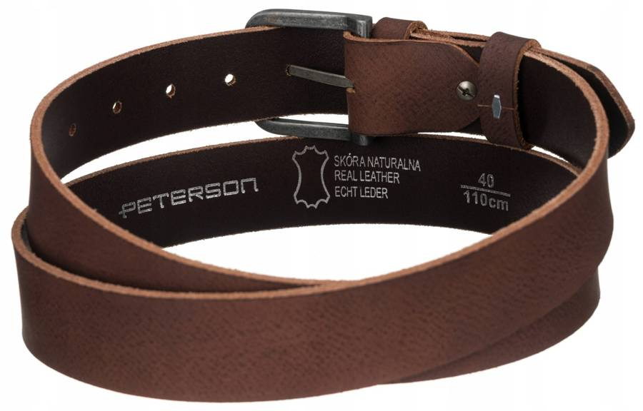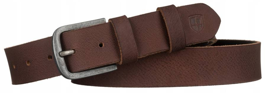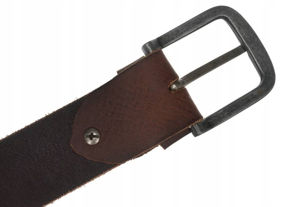 - Prawdziwie męski design | Stylowy pasek w modnym, brązowym kolorze. Zakończony jest srebrną klamra, celowo zmatowioną;
