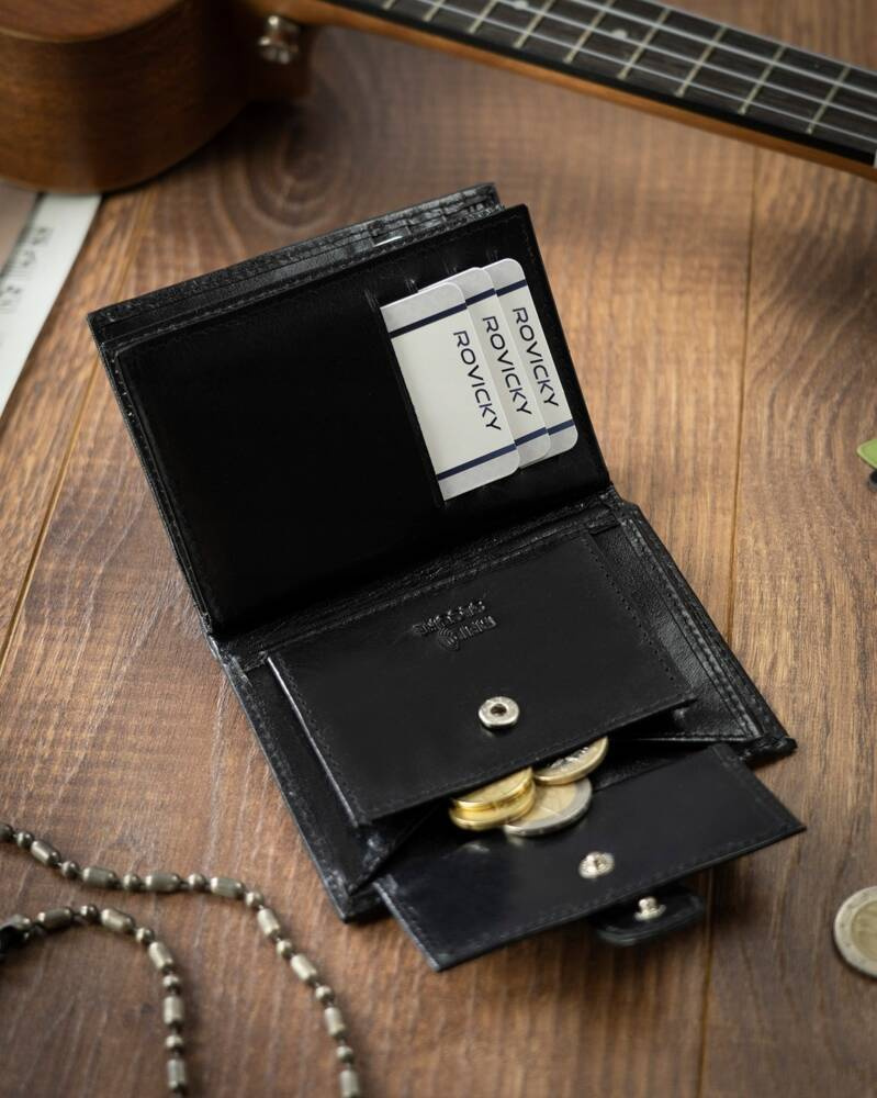 Najwyższej jakości portfel męski ze skóry naturalnej, który: