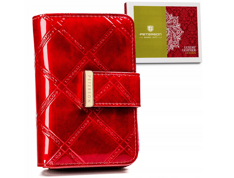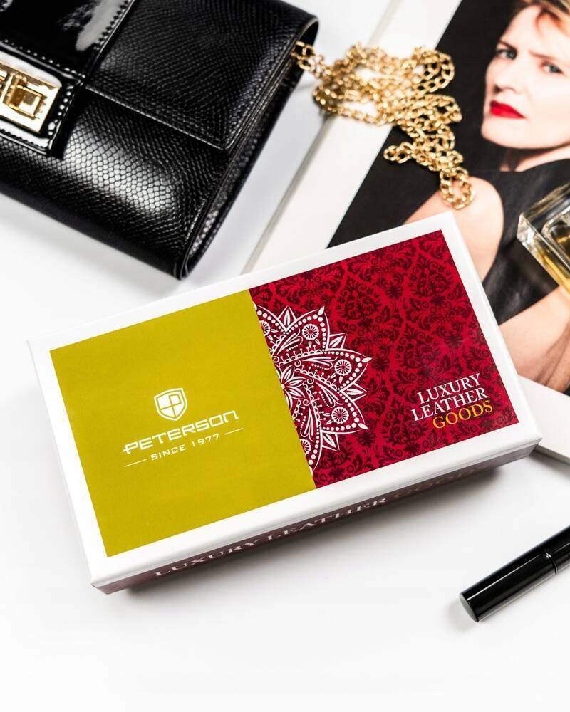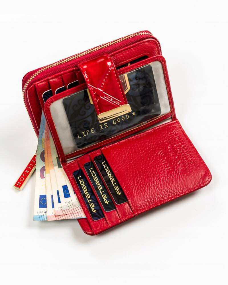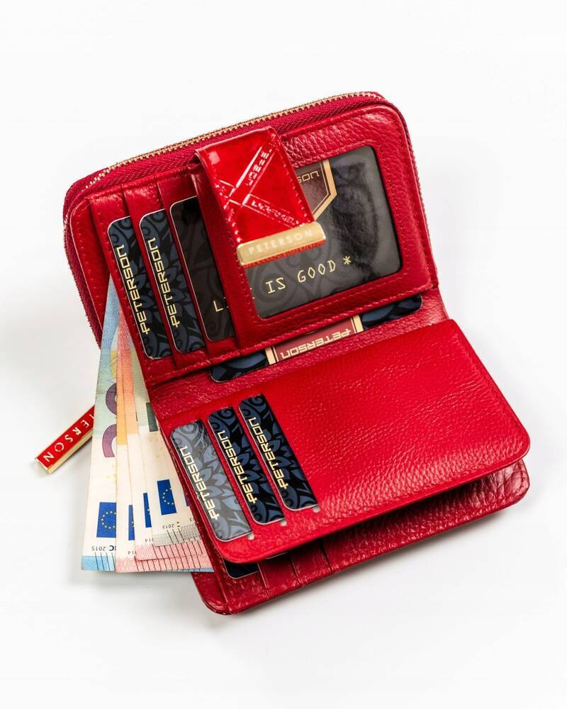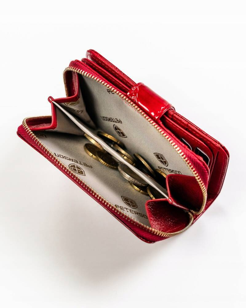 Portfel damski ze skóry naturalnej zamykany na zatrzask i suwak — Peterson