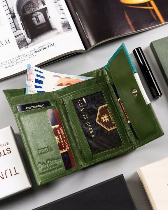 Mimo swoich niewielkich rozmiarów, portfel powieści najpotrzebniejsze drobiazgi. Kieszenie na banknoty i monety są odpowiednio duże, aby pomieścić pokaźne ilości pieniędzy.