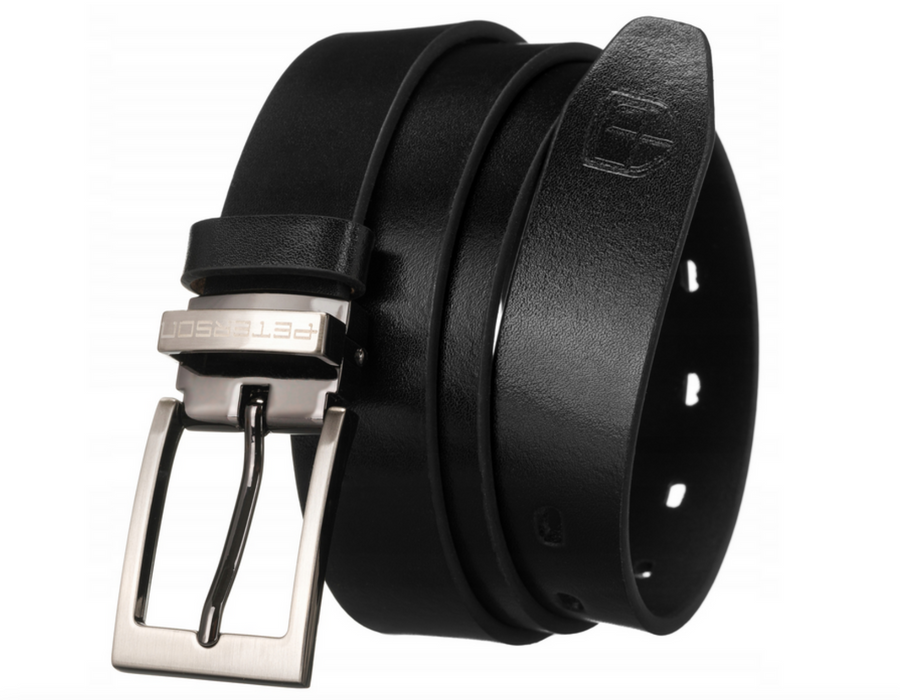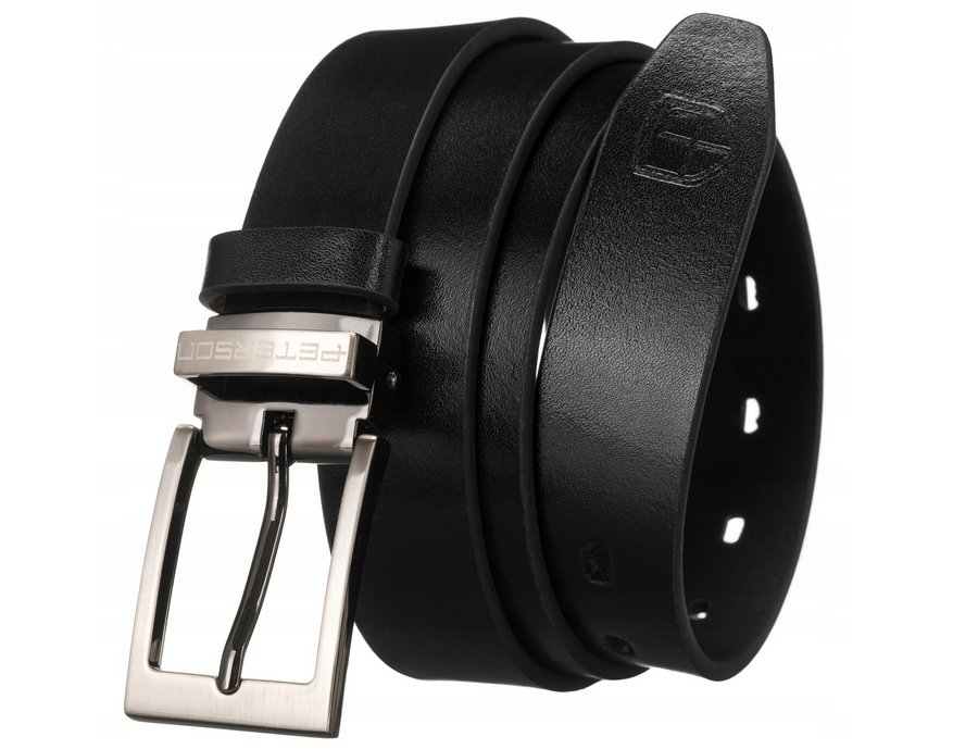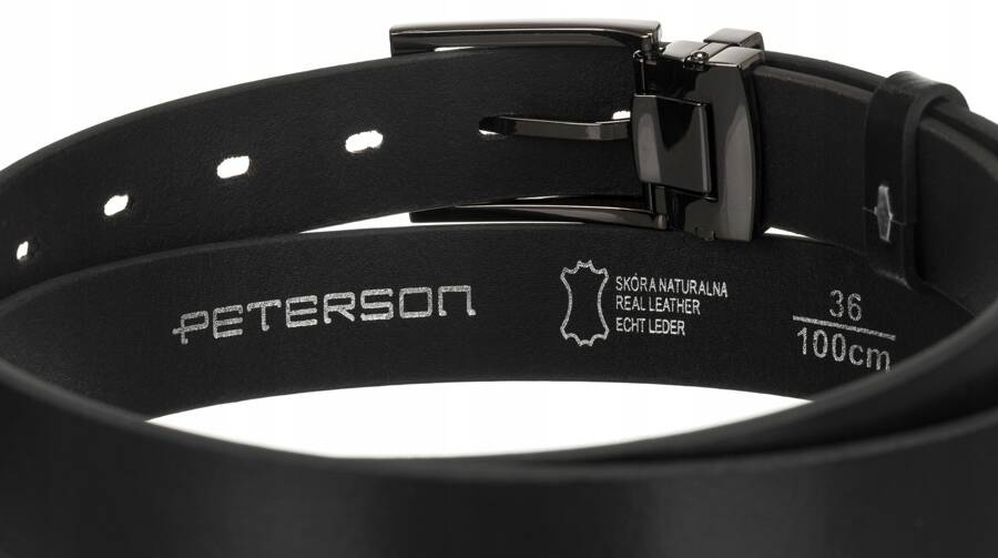 Skórzany, wąski pasek męski z klasyczną klamrą — Peterson
