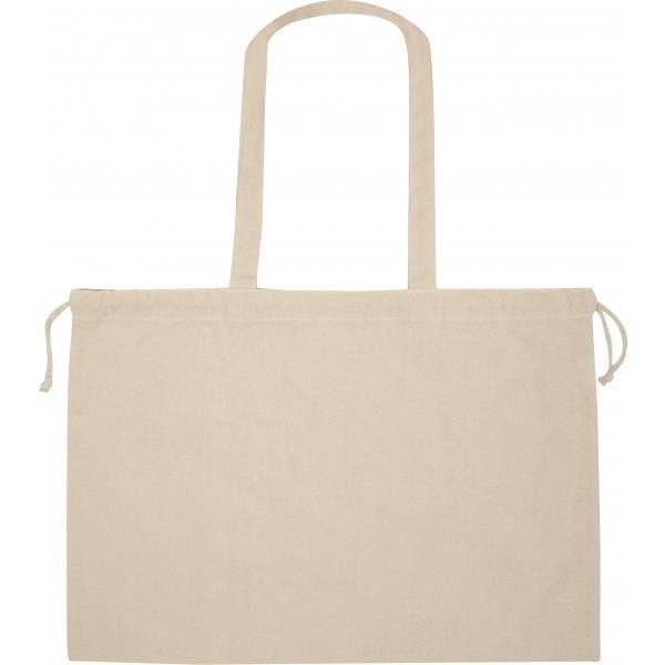 Torba bawełniana z długimi uszami i zamknięciem na sznurek, o gramaturze 180g/m², z certyfikatem Oeko-Tex® STANDARD 100.