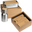 Zestaw upominkowy w ekologicznym opakowaniu, składający się z lunch boxa oraz bidonu o pojemności 300 ml.