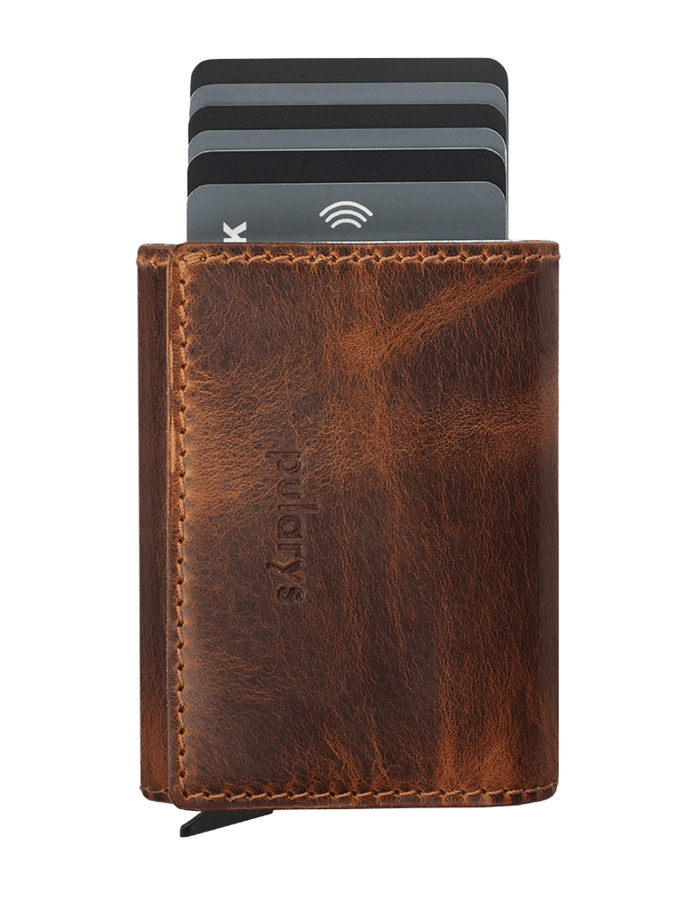 Ta specjalna aplikacja wosku pozwala portfelowi rozwinąć unikalny charakter w miarę starzenia się, z przebarwieniami, plamami i zadrapaniami.