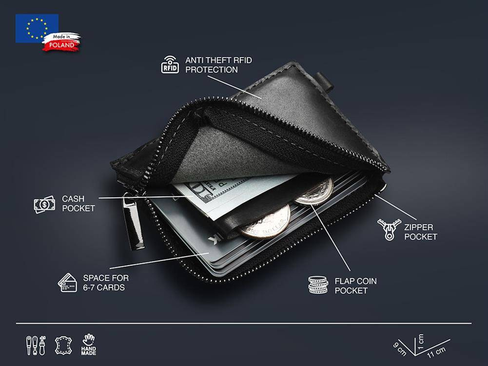 Daje łatwy dostęp do ośmiu kart płatniczych, bilonu oraz banknotów.