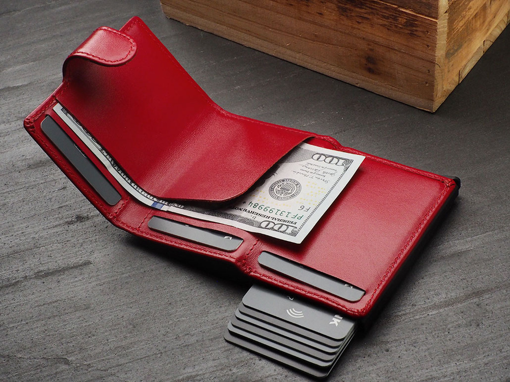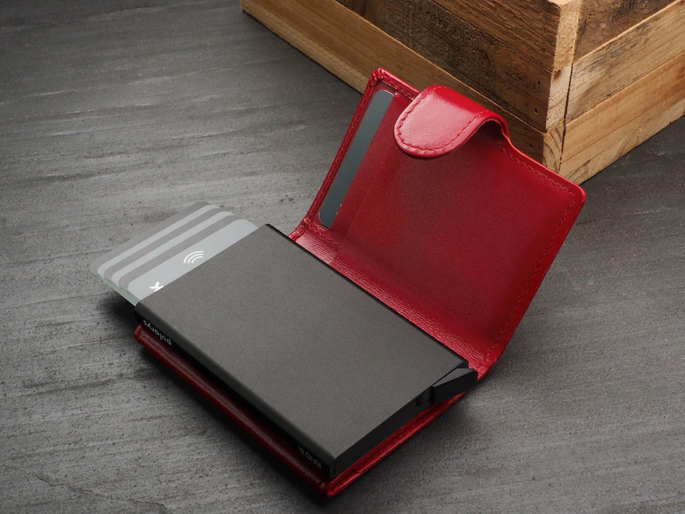 Stopniowo wysuwający karty mechanizm "pul" zapewnia łatwy i szybki dostęp do zawartości portfela.