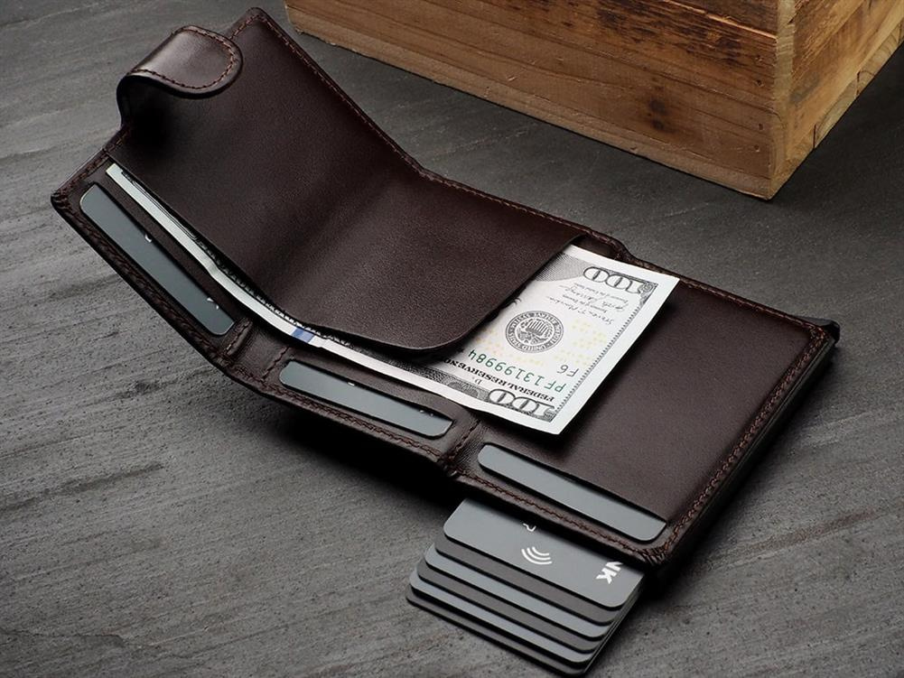 Stopniowo wysuwający karty mechanizm "pul" zapewnia łatwy i szybki dostęp do zawartości portfela.