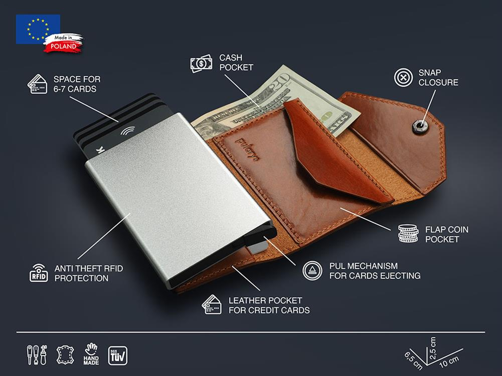 Dzięki zastosowanej w jego konstrukcji technologii blokowania RFID, Twoje dane oraz środki na kartach płatniczych są całkowicie bezpieczne i chronione przed nieautoryzowanym skanowaniem lub kradzieżą.