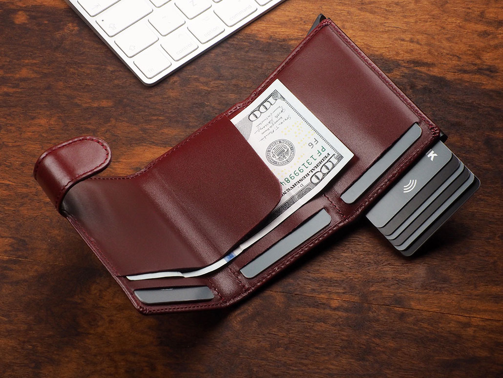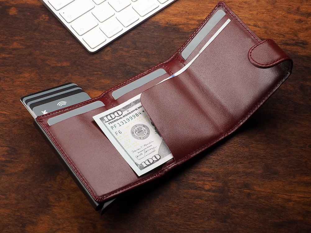 Stopniowo wysuwający karty mechanizm "pul" zapewnia łatwy i szybki dostęp do zawartości portfela.