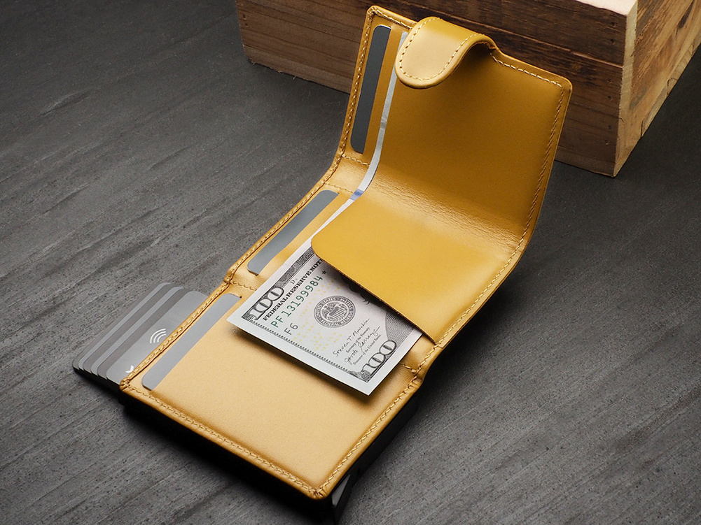 Rozmiar: 7,5 x 9,5 x 2,5 cm Materiał: Skóra Italia Kieszeń na banknoty Mieści 9 kart Wzór zarejestrowany ® Zabezpieczenie RFID Wykonany z delikatnej, ekskluzywnej skóry Italia. Karty, banknoty - masz je zawsze pod ręką, uporządkowane w kilku łatwo dostępnych kieszonkach. Stopniowo wysuwający karty mechanizm "pul" zapewnia łatwy i szybki dostęp do zawartości portfela. Dzięki technologii blokowania RFID , Twoje dane oraz środki na kartach płatniczych są całkowicie bezpieczne i chronione przed nieautoryzowanym sczytaniem lub kradzieżą. Portfel został zapakowany w elegancie pudełko .