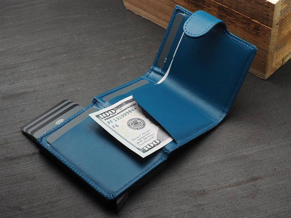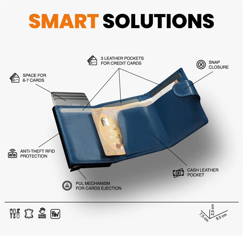 Stopniowo wysuwający karty mechanizm "pul" zapewnia łatwy i szybki dostęp do zawartości portfela.