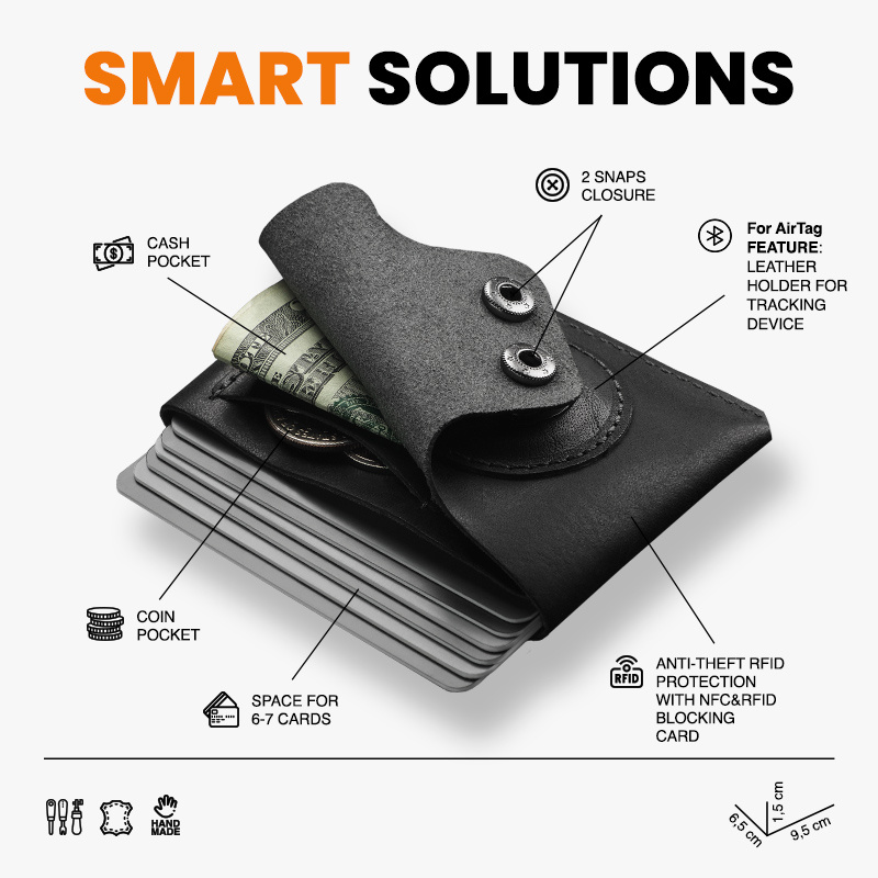 Specjalnie zaprojektowany uchwyt na airtag pozwala na wygodne przechowywanie dodatkowego zabezpieczenia Twojego portfela.
