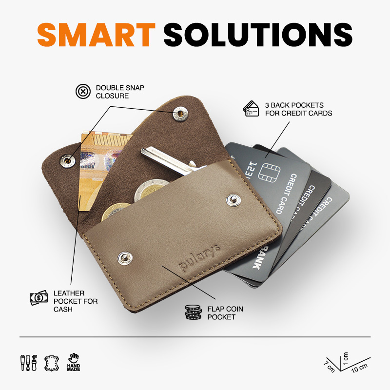 Rozmiar: 10 x 7 cm Materiał: Skóra Italia Zawiera kartę blokującą sygnały NFC i RFID Kieszeń na banknoty Kieszeń na bilon Kieszeń na karty kredytowe Zapięcie na 2 zatrzaski Wykonany z miękkiej skóry Italia, zachwyca pomysłowością i starannym wykończeniem. Szykowne przeszycia i zapięcie na dwa zatrzaski, składają się na skromny, lecz przyciągający uwagę design. Niewielki, kompaktowy i delikatny w dotyku. Pomieści zaskakująco wiele - karty, banknoty i bilon będą zawsze w zasięgu ręki. Zapakowane w pudełko prezentowe .