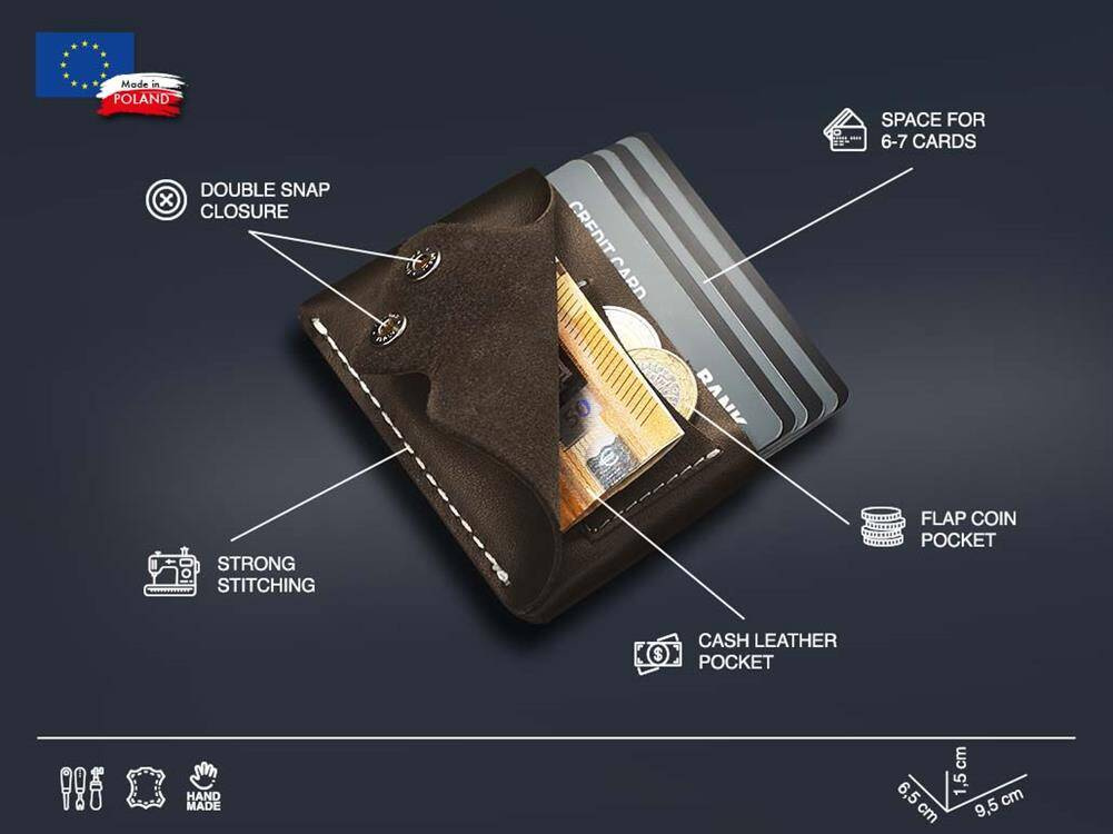 Dwie kieszonki: na banknoty i bilon pomogą Ci uporządkować zawartość.