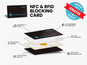 Zawiera kartę blokującą sygnały NFC i RFID