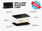 Zawiera kartę blokującą sygnały NFC i RFID