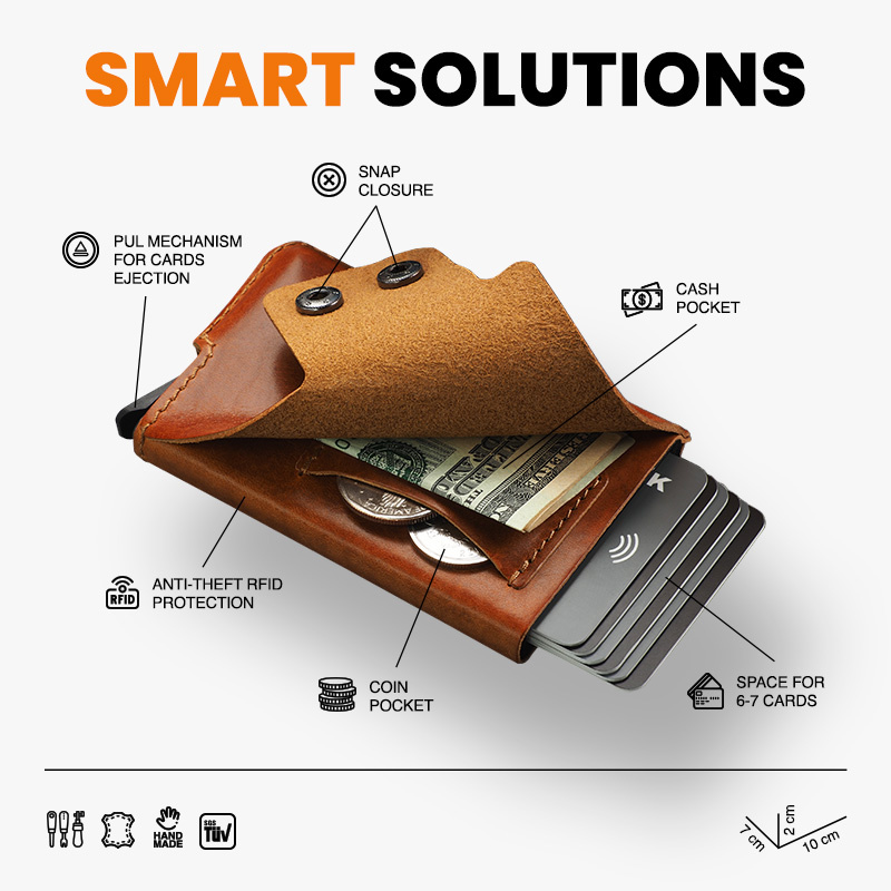 Dzięki technologii RFID zastosowanej w designie portfela, Twoje wrażliwe dane oraz środki na kartach płatniczych są całkowicie bezpieczne i chronione przed nieautoryzowanym sczytaniem lub kradzieżą.