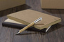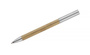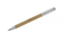 Elegancki długopis z bambusowym korpusem. Długopis jest wykończony metalowym klipsem i elementami w kolorze srebrnym.