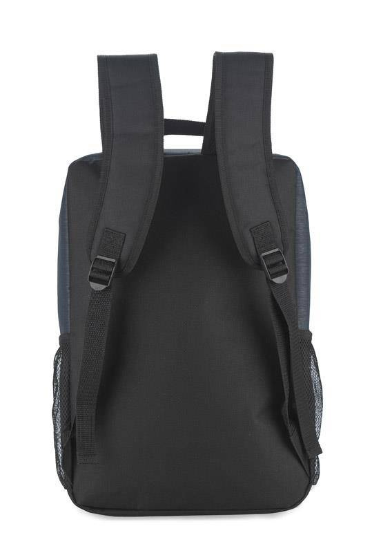W środku zmieści się 17-calowy laptop. Posiada 1 komorę główną z wąską przegrodą, przednią kieszeń zapinaną na zamek oraz dwie boczne kieszenie na napój wykonane z siateczki.