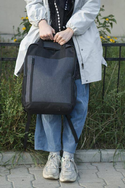 Wygodne dwie rączki gdy jest potrzeba niesienia w dłoni. Wewnątrz czarna podszewska.