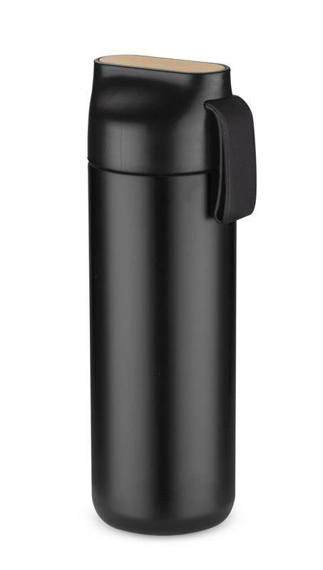 Butelka termiczna ELSA wykonana jest ze stali nierdzewnej o podwyższonym standardzie. Posiada próżnię między ściankami, dzięki czemu utrzymuje temperaturę napoju około 10 godzin. Zakrętka z tworzywa posiada ozdobny element z naturalnego bambusa i silikonowy uchwyt.