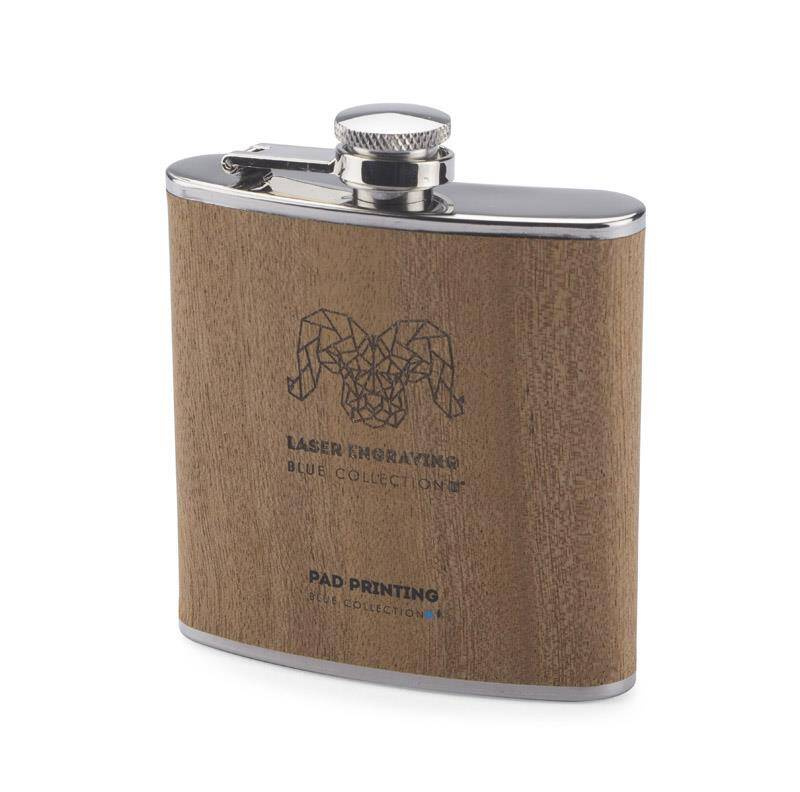 Piersiówka ze stali nierdzewnej o pojemności 200 ml z bezpiecznym zamknięciem.
