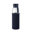 Szklana butelka z recyklingu z neoprenowym etui, z zakrętką z PP i z silikonową zawieszką.