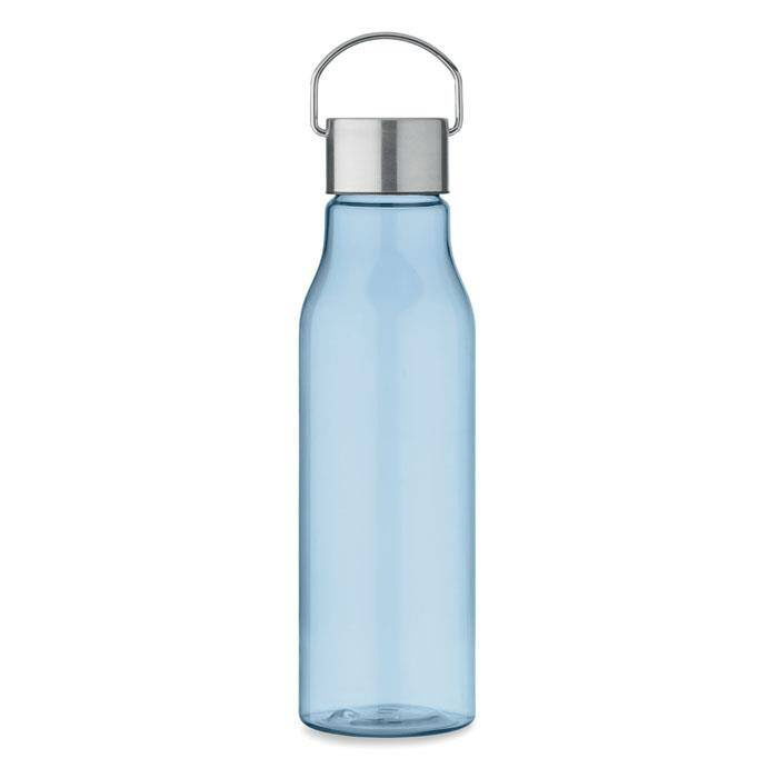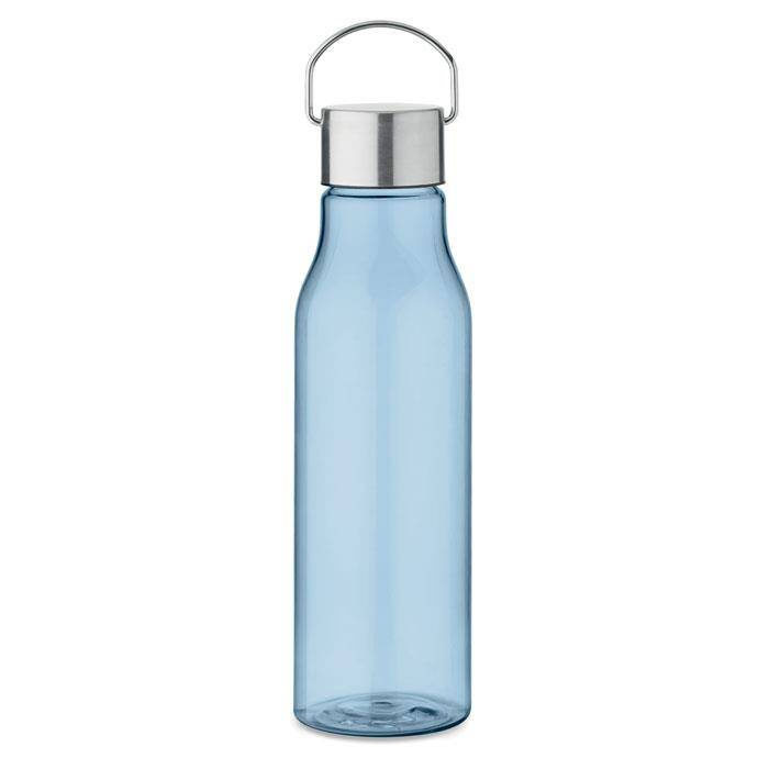 Butelka do picia z RPET, wolna od BPA, z zakrętką ze stali nierdzewnej z uchwytem. Szczelna. Pojemność: 600 ml.