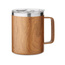 Dwuścienny kubek ze stali nierdzewnej z recyklingu (90% recyklingowanej stali nierdzewnej i 10% stali nierdzewnej) o drewnianym wyglądzie z pokrywką, z zasuwanym otworem do picia. Pojemność: 300 ml.