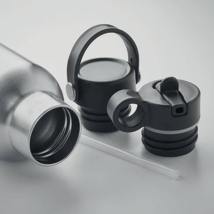 Izolowana próżniowo butelka o podwójnych ściankach ze stali nierdzewnej z recyklingu (90% stali nierdzewnej z recyklingu i 10% stali nierdzewnej) ze szczelną zakrętką i dodatkową wymienną wbudowaną słomką. Pojemność: 700 ml.