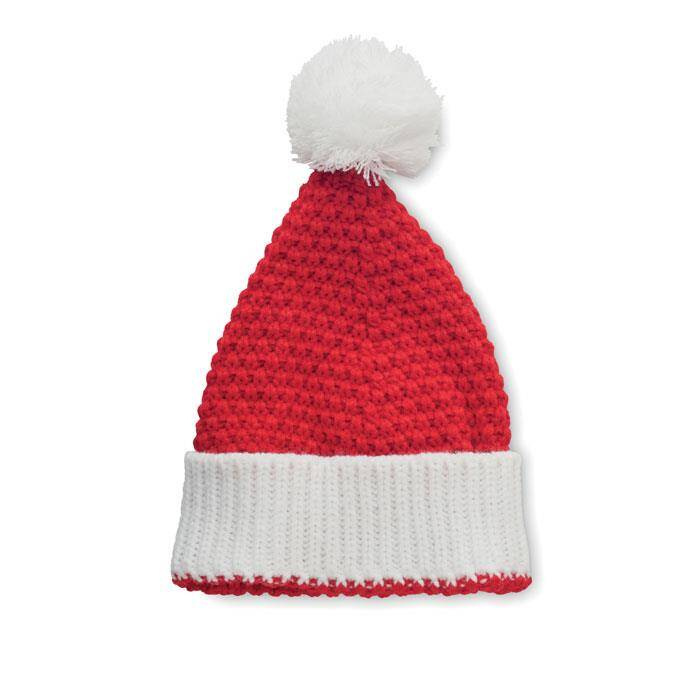 Świąteczna czapka z dzianiny z mankietem i pomponem z miękkiego, rozciągliwego akrylu.