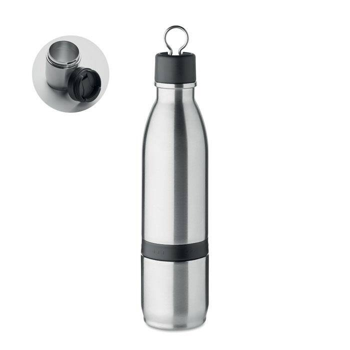 Butelka izolowana próżniowo 2-w-1 z podwójną ścianką ze stali nierdzewnej, z odłączanym kubkiem. Szczelna. Pojemność: butelka: 500 ml / kubek: 310 ml.