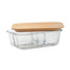 Lunch box ze szkła borosilikatowego z 3 przegródkami, bambusową pokrywką i silikonową opaską.