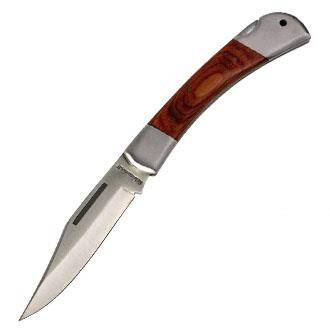 Składany nóż Schwarzwolf z drewnianą rękojeścią i blokadą bezpieczeństwa.