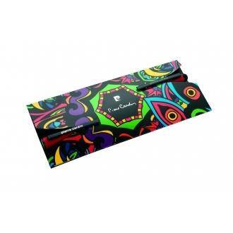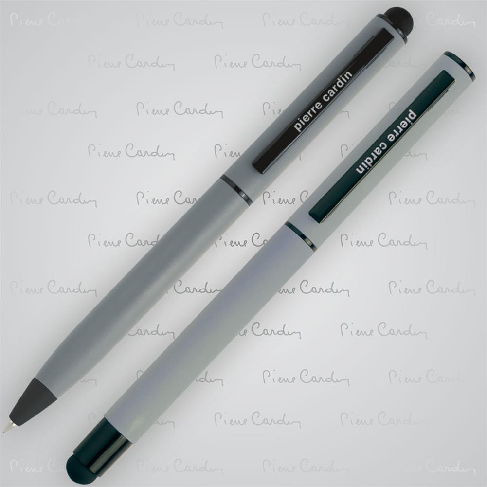 Zestaw piśmienniczy w modnych, intensywnych kolorach, składający się z długopisu oraz pióra kulkowego. Obydwa artykuły posiadają przyjemną w dotyku powierzchnię soft touch i czarne detale oraz funkcję touch pen. Długopis wyposażony w niebieski wkład (0,7 mm), a pióro kulkowe w niemiecki wkład Schneider piszący na niebiesko (0,5 mm). Całość zapakowana w eleganckie etui prezentowe z certyfikatem autentyczności Pierre Cardin.