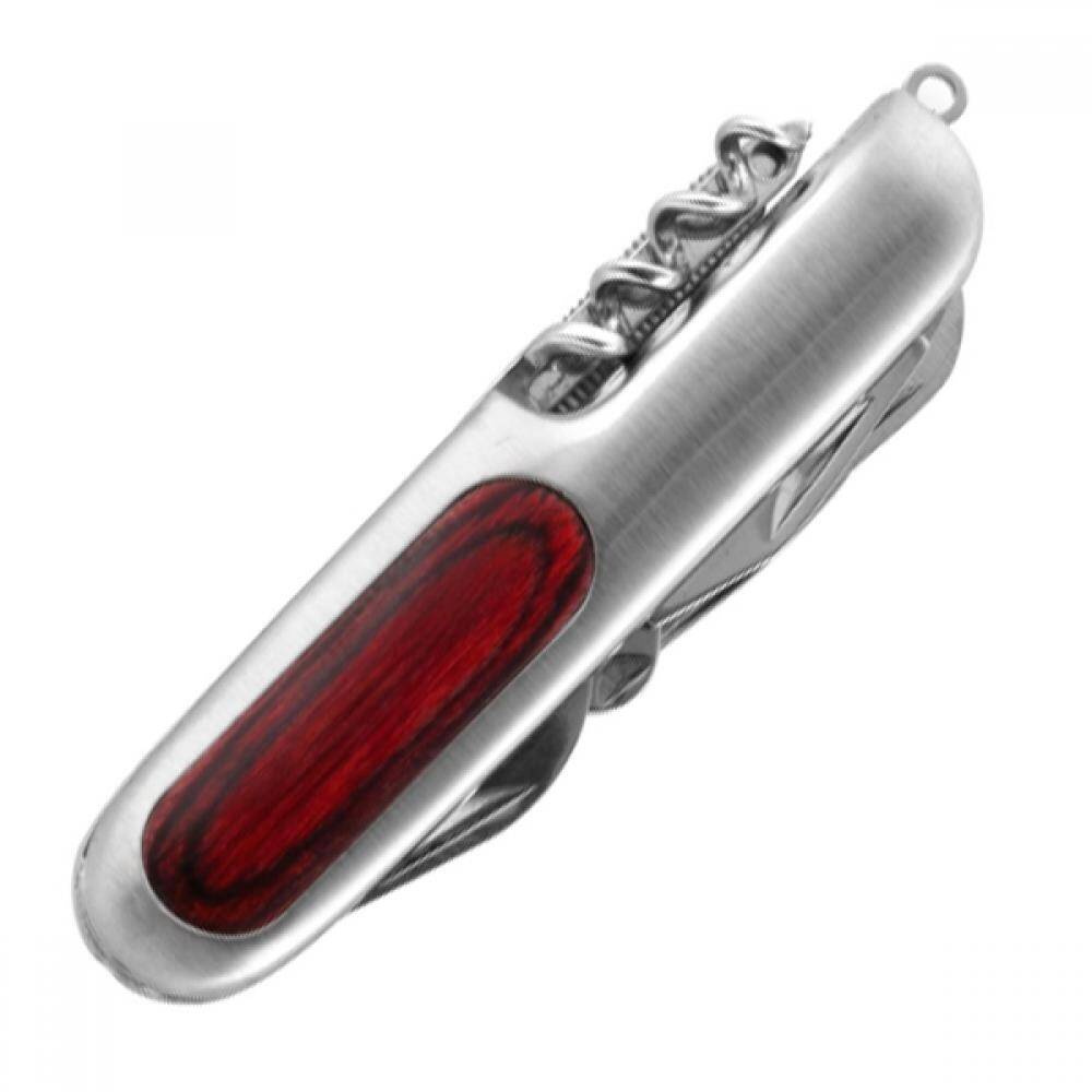 Składany scyzoryk wielofunkcyjny 9 w 1. Materiał: stal nierdzewna, drewno.