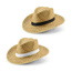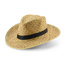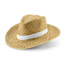 Kapelusz z naturalnej słomy z poliestrową wstążką. W przypadku zamówień bez personalizacji wstążka jest dostarczana oddzielnie (nie jest umieszczona na kapeluszu)