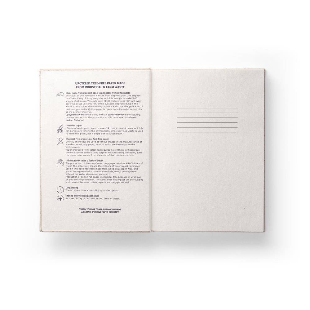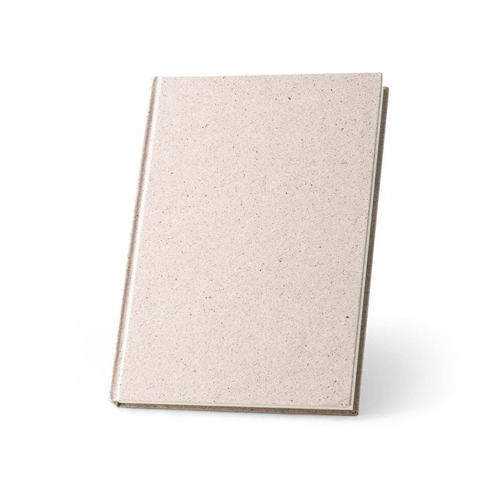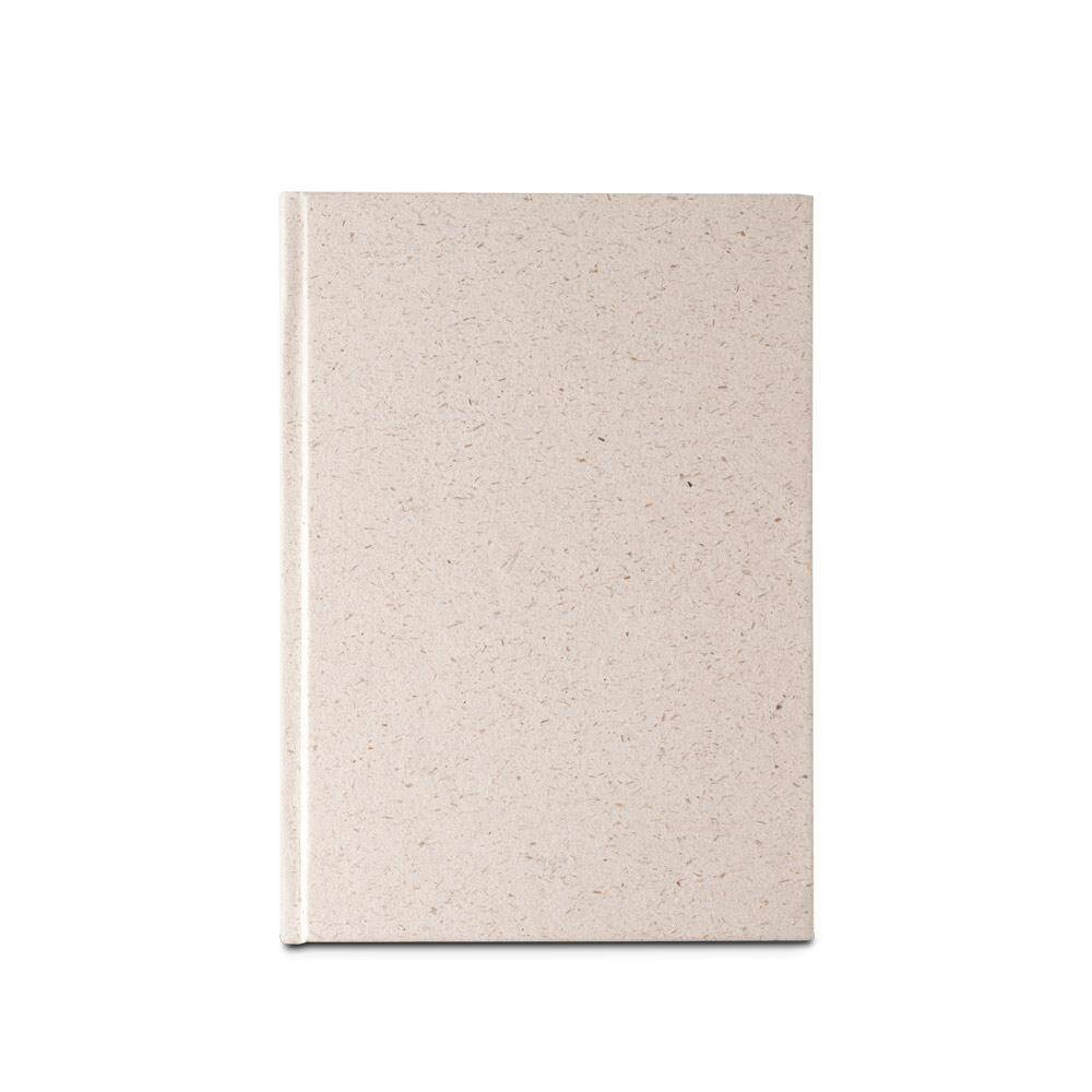 Notatnik A5 z twardą okładką wykonaną z organicznej masy, z rośliny zwanej "trawą słoniową".