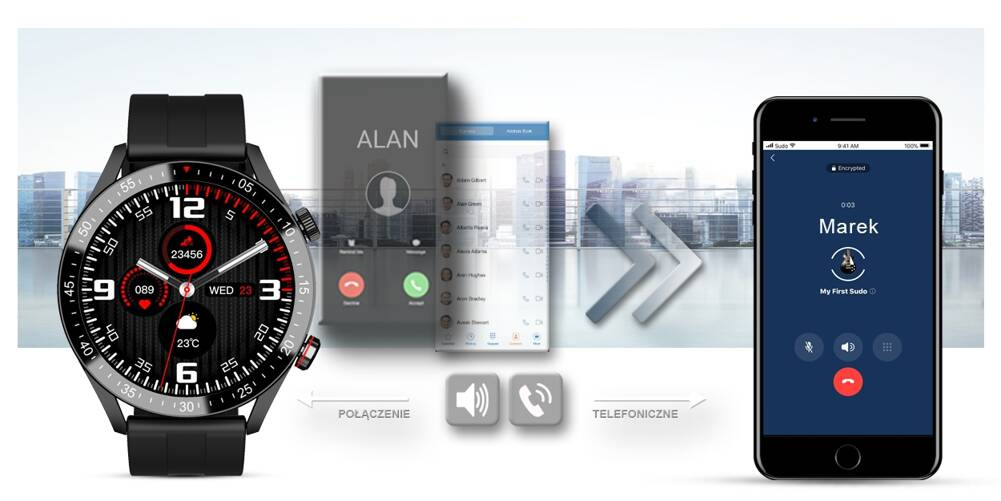 Po sparowaniu smartwatcha z twoim smartfonem, możesz bezproblemowo odbierać i wykonywać połączenia telefoniczne. Wbudowany głośnik oraz mikrofon pozwala rozmawiać bez konieczności wyciągania telefonu komórkowego.