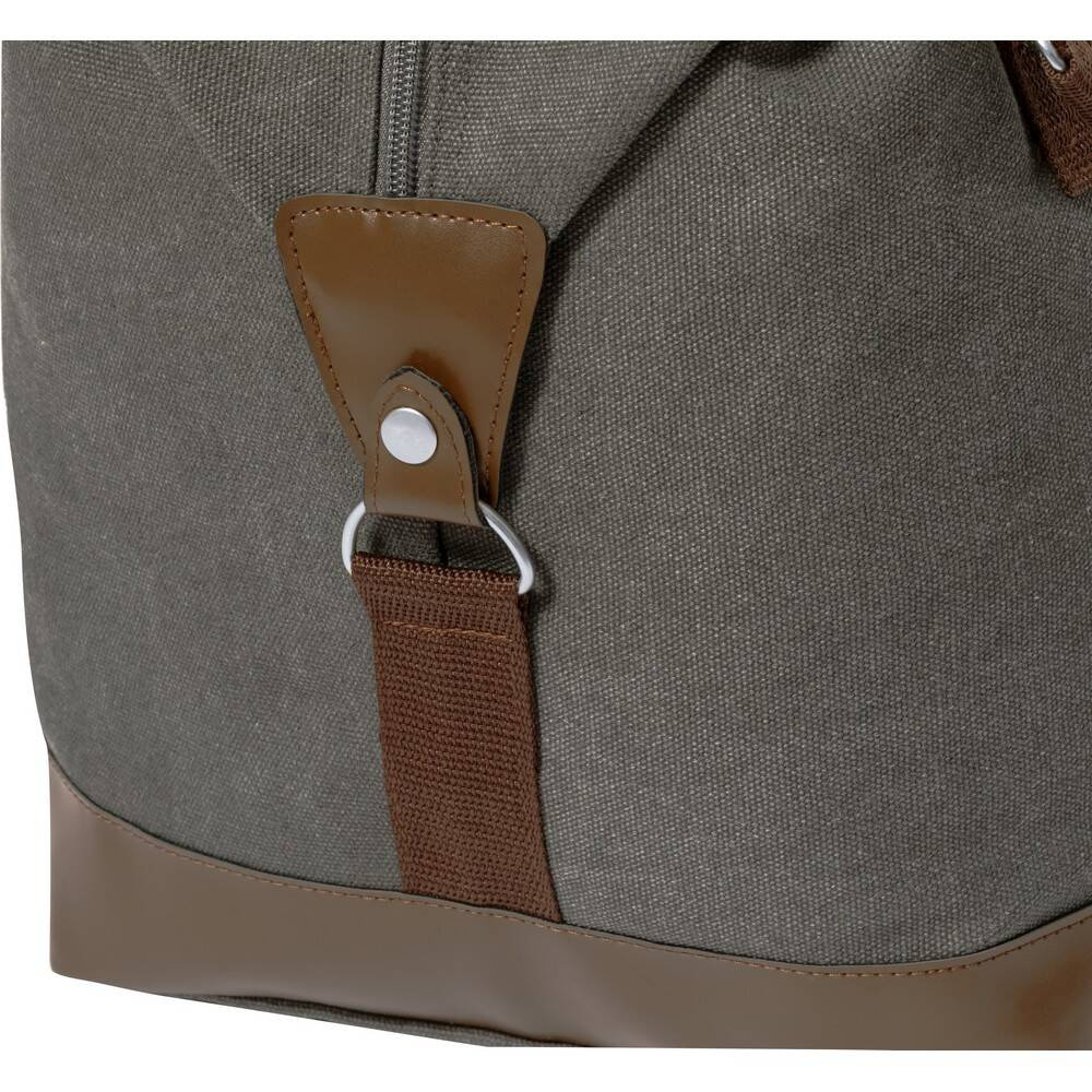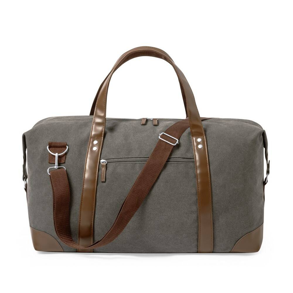 Torba sportowa, podróżna, wykonana z płótna, przegroda główna i kieszeń przednia na zamek błyskawiczny, wzmocnione narożniki, uchwyty i regulowany pasek na ramię