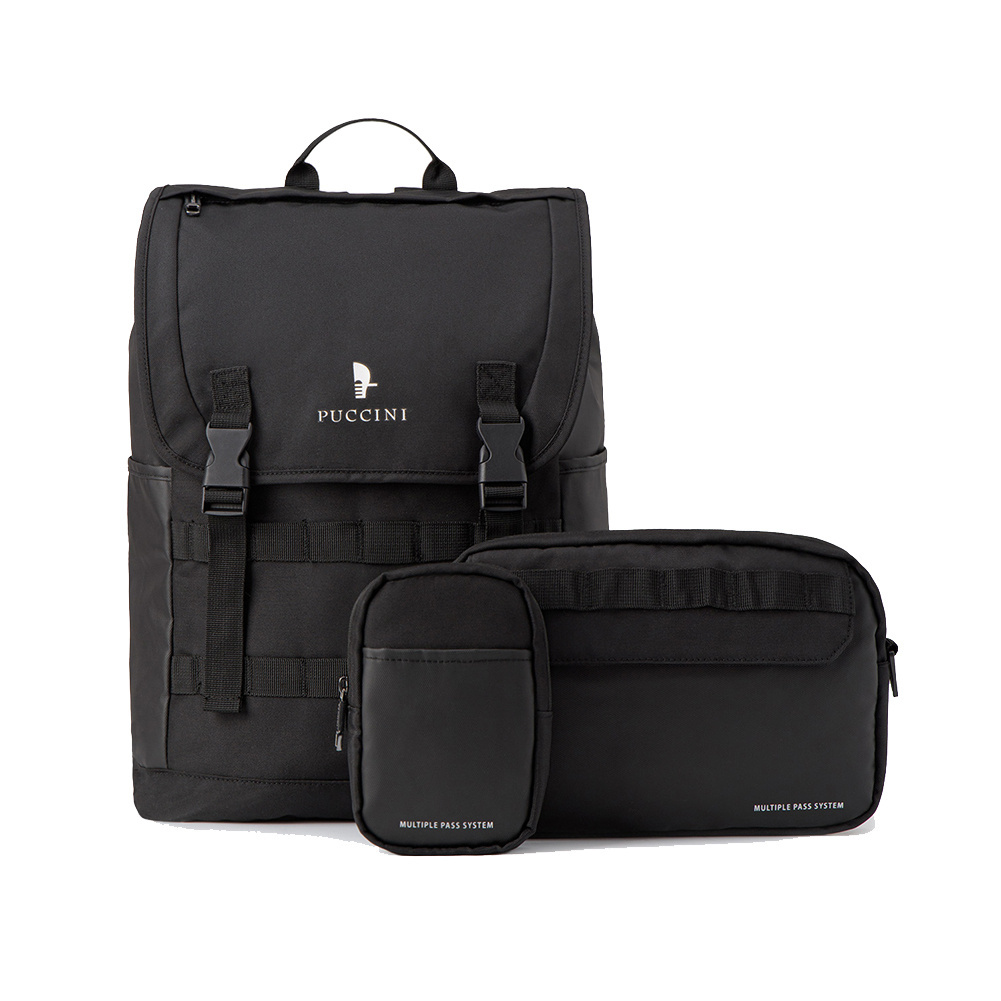 - plecak składa się z trzech części, plecaka, saszetki oraz etui