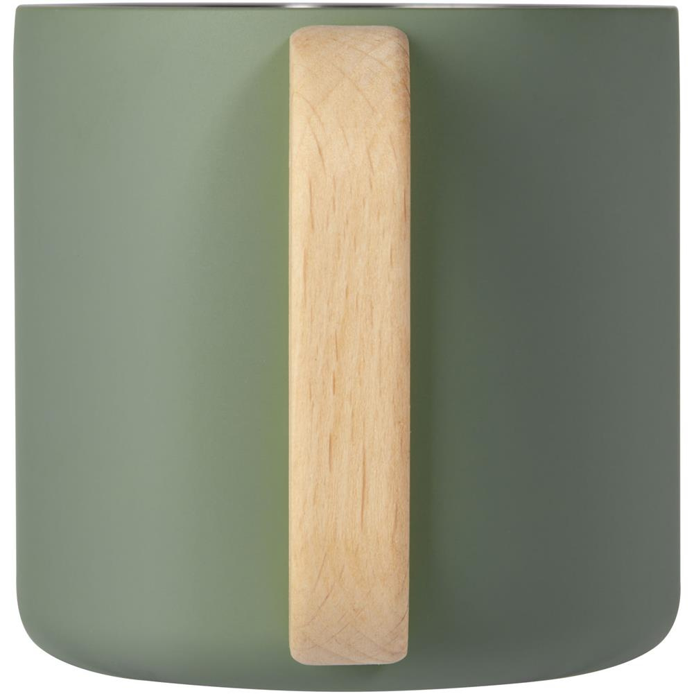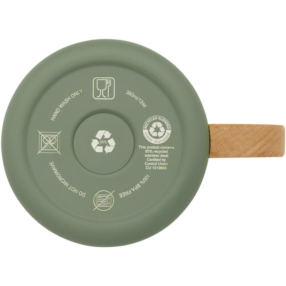 Kubek Bjorn wykonany jest ze stali nierdzewnej z recyklingu z certyfikatem RCS z uchwytem wykonanym z odpowiedzialnie pozyskiwanego drewna bukowego.
