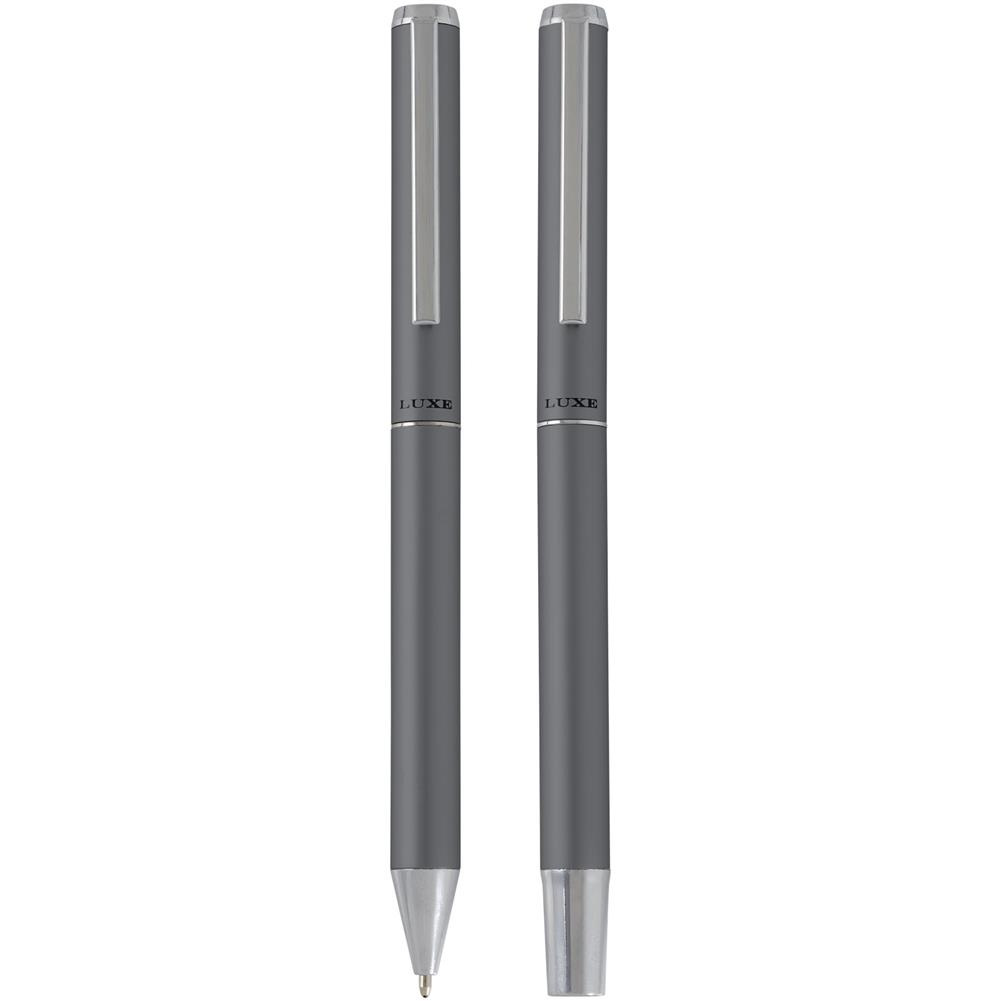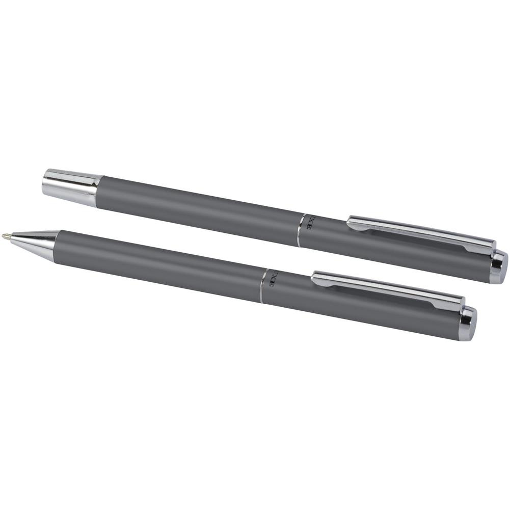Korpusy długopisu i pióra kulkowego wchodzących w skład tego zestawu są wykonane z matowego, koloryzowanego i anodyzowanego aluminium pochodzącego z