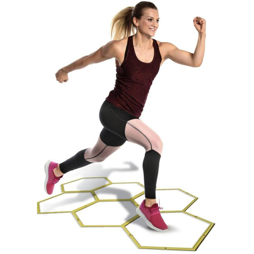 DRABINKA KOORDYNACYJNA Z SZEŚCIOKĄTÓW 6SZT UMBRO będzie idealna do wszelkiego rodzaju treningów. Ustawiona na boisku idealnie nadaje się do tworzenia torów, przeszkód i wzorów, dzięki temu ten zestaw jest idealny jako materiał treningowy do gry w piłkę nożną.