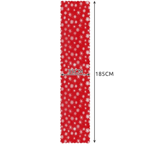 BARDZO DŁUGI BIEŻNIK ŚWIĄTECZNY NA STÓŁ CZERWONY W BIAŁE ŚNIEŻYNKI 220 x 35 cm
