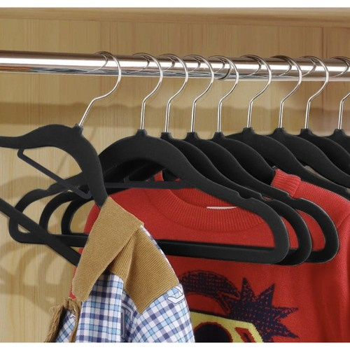• WYSOKA JAKOŚĆ - wieszaki są wykonane z plastiku i w całości pokryte przyjemnym w dotyku welurem, dzięki czemu ubrania nie zsuwają się. Dodatkowo każdy wieszak posiada uchwyt na krawat, pasek czy apaszkę oraz ma wgłębienia na tasiemki.