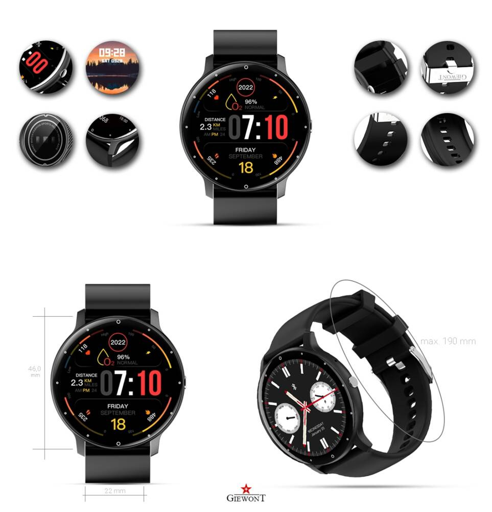 To niezwykle elegancki i modny smartwatch na paskiem silikonowym, który będzie Ci towarzyszył podczas codziennych aktywności. Jego lekka obudowa sprawdzi się znakomicie podczas jazdy na rowerze, biegania i uprawiania innych sportów, jakie umożliwia ten smartwatch. Z tym smartwatchem możesz w pełni cieszyć się z każdego ruchu - Giewont GW120 PRO pozwoli Ci zaplanować i kontrolować czas, dystans, spalanie kalorii i efekt treningu. Podczas aktywności lub relaksu, możesz słuchać i sterować muzyką.