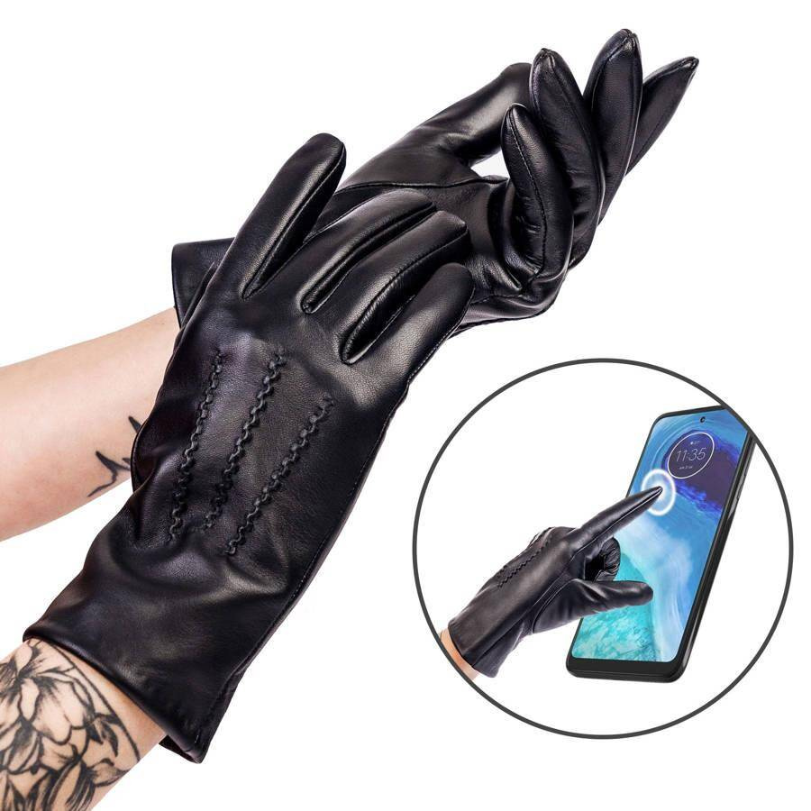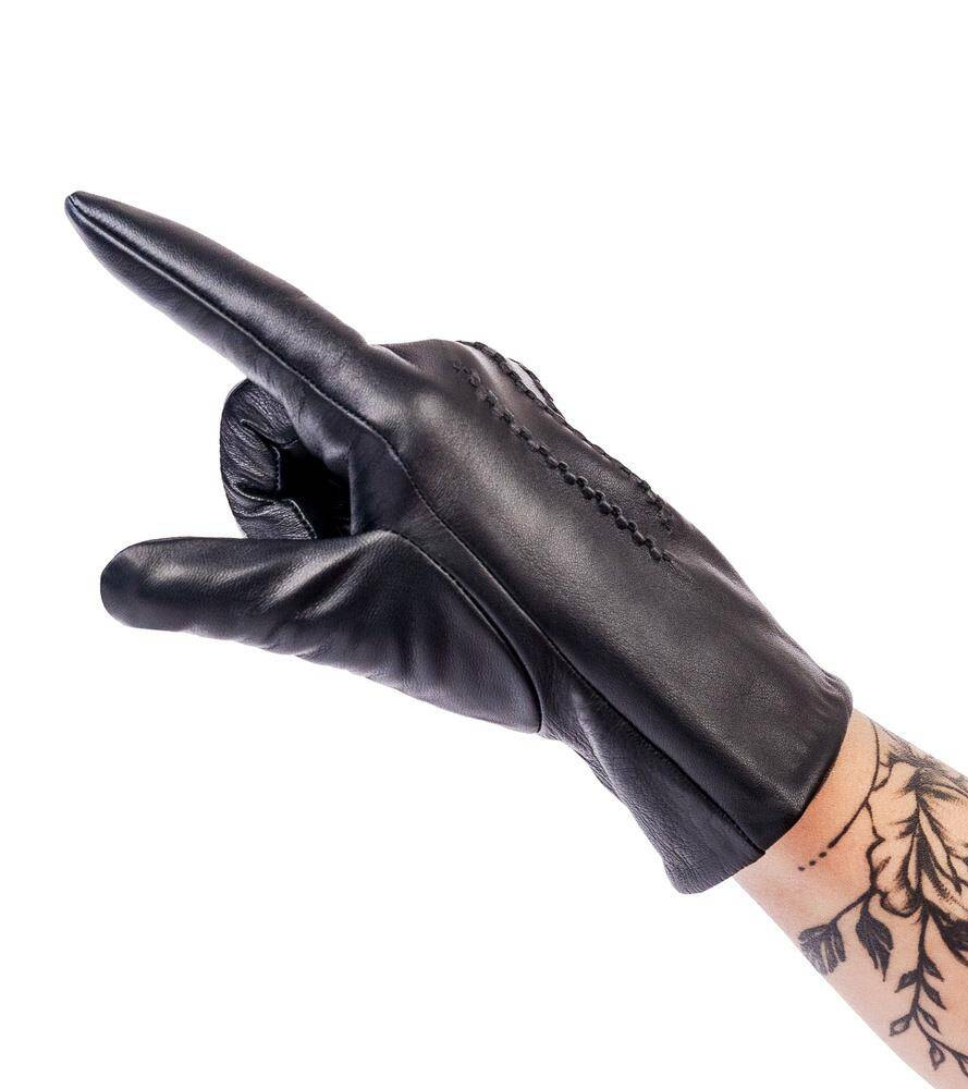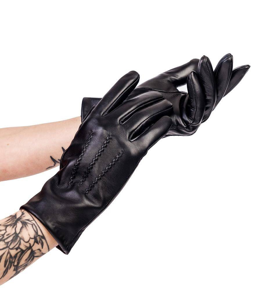 Ocieplane, skórzane rękawiczki damskie z pręgowanym wzorkiem — Rovicky